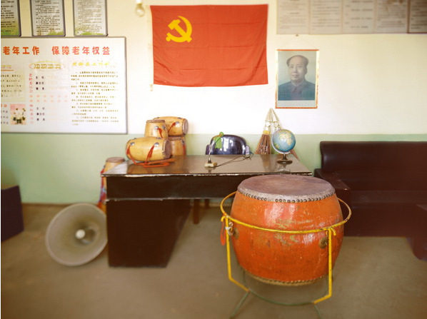 《权力空间》一组拍摄的是山西乡下的乡村办公室,由于经费紧张、青壮劳力进城和乡村行政控制力的 架空,这些空间早已不复往日的辉煌,有些甚至不得不挪到村长家里。在这里,奖状、标语、旗帜…… 象征着权力的图腾并不俭省,在那些家庭村长办公室,这甚至成为空间身份的见证物和空间尊严的象征;另一组拍摄的是大城市中政府机构官员和企业老板们的办公室,毫无疑问,这正是中国“权力空间”的另一极,是乡村权力空间的乌托邦。