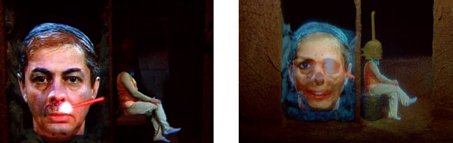 另一不容错过的作品来自著名法国艺术家皮耶瑞克·索林(Pierrick Sorin)《迷你全息剧场之伟大的科学发明》(Mini Optical Theatres – Great Scientific Inventions),这组由4件微缩舞台造景与全息影像组成的装置,即所谓“视觉魔幻剧场秀”(Optical Theatres),借鉴了19世纪表现鬼魂浮现之景的舞台特效。它将影视人物投射在真实的迷你布景中,从“个人面部整容师”到“真人隔空幻移术”,艺术家杜撰了一个癫狂科技所统治的未来,不仅展示其美好的一面,更多揭示其令人担忧的部分。同时,艺术家通过各种特效与人物角色、表演向电影大师乔治斯·梅里耶致敬。