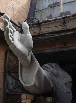 接下来的一件作品是一只巨大的毛主席像的右手臂(6m),按照当时标准的毛主席像尺寸(12m)同比例复制。当时毛主席塑像十分常见,都特别标准,风格是典型的写实学院派,它表达了当时时代的情感。