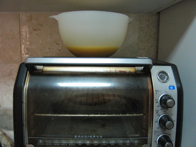 不用隔水打发的最简便的办法,调好蛋液之后放在预热的烤箱上温着,待会要加入面粉了再拿下来