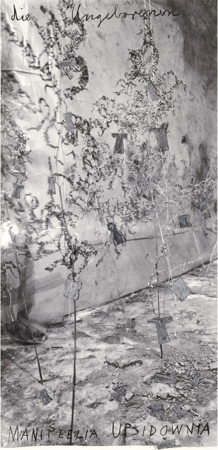 安塞姆·基弗(Anselm Kiefer)的纸面作品同其大型雕塑一样,都有援引自德国历史、神话、文学、音乐、哲学、建筑与民俗的主题,正如作品《未生》(Die Ungeborenen)对第三帝国(Third Reich)遗产的质疑。在这张被重新加工过的照片上,被战争摧毁的墙壁与地面之前是干枯植物的尸骸碎片。