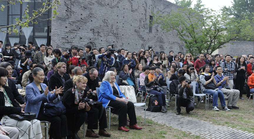 看了三影堂摄影奖的展览(登在燃点),荣荣很快地做了导览,15个空间,从草场地一头到另一头。回三影堂见Iona,核对报道的撰写,去艺术通道的展览开幕吃饭,东北菜,还行。