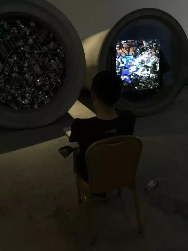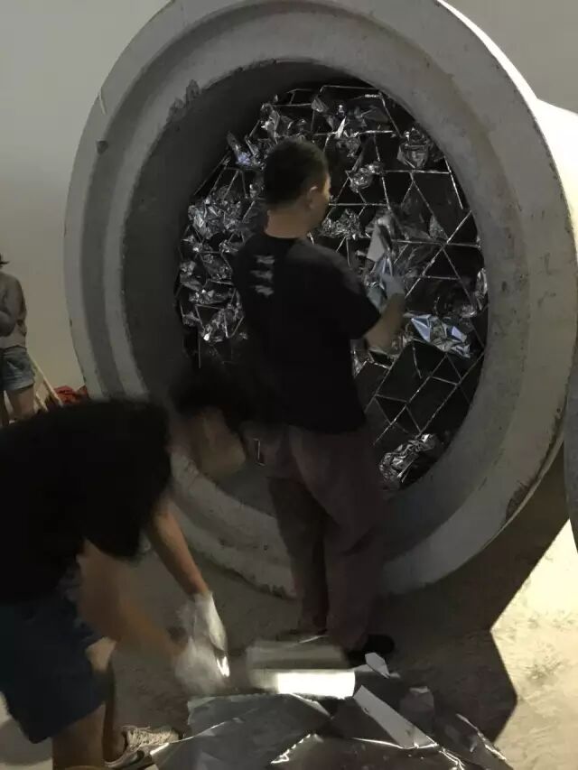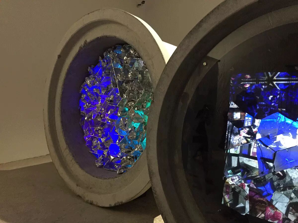 ▲ 《无题》多路视频、水泥管、双面镜 直径200cm×100cm(局部)