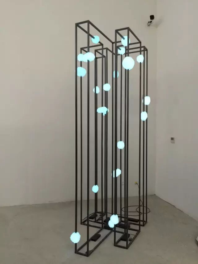 ▲ 《无题》,EL冷光灯、铁架 147×100×300cm