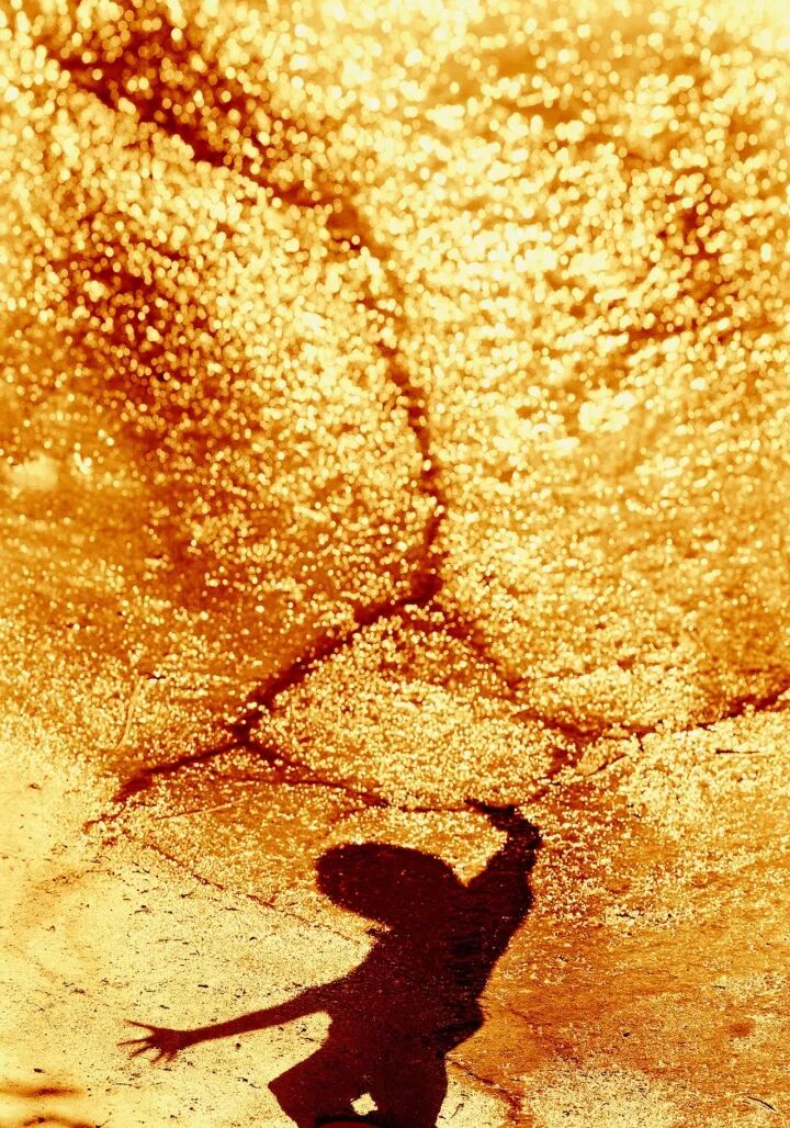 《消失的是日子的黄金》与Bersarin Quartett的一首单曲同名,却并不像氛围音乐那样渲染情绪并让意识沉淀,反倒选择了偏亮的白色光线。这一方面打扰着作品,一方面惹恼着观者;但也正因这白色光线(而非模仿黄昏的昏暗光线)让充斥这些作品的细节显露无疑,甚至颇为刺目。《关于891次黄昏心灵活动的百科全书》(2012—2017)金色印压皮书的内页都很薄,薄到半透明,每一页都会透出下面的字;用水磨石表面不同颜色的碎石粒拼写的《狗狼暮色》(2012—2017)就像测试色盲一样测试着我们对共生与边界的判断;《理解一首里尔克的诗》(2012—2017)中神秘主义的批注将三联幅串成艺术家口中的理解之道三部曲:“复写的文字、停格的思考、偶遇的图像”。在喃喃自语般的摘抄文字与点缀着自然、人体、莫名的事物细节与刻印文字的陌生化图像之间,体验与思考的惯性都被悬置起来,观者受邀加入这趟围绕黄昏的盗梦式研究。