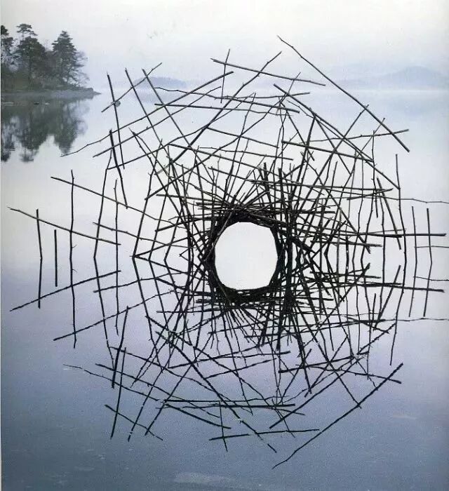 这与英国艺术家安迪·高兹沃西(Andy Goldsworthy)和大卫·纳什(David Nash)拒绝将博物馆的艺术规划强加于自然之上不同,他们“极简地”在海边的浮木或被自然烧黑的树干中“拾得”雕塑作品:用海边的卵石堆起圆锥形界标;用荆棘和树枝将树叶和雪捆成的球,随着季节的自然更替,它们也将糜烂或变形。
