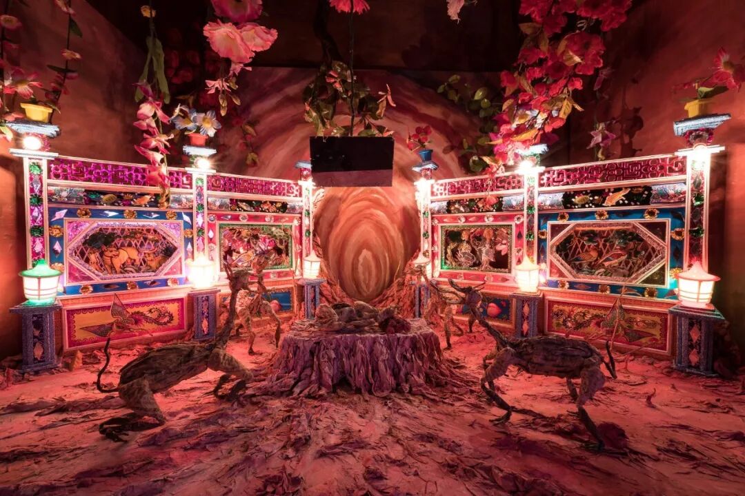 百物曲的策划机制缘起于这一问题,并为由此衍生出的诸多问题提供了一次尝试性的解答:一个机构独立策划,还是与其他机构共同策划?一个单次展览,还是使其成为可演进生长的有机系列?一个所谓的当代艺术领域,还是广泛多元的创作实践?一个现场,还是多个现场的叠加?如何激活展览与空间的表演性?在越来越多的商业展览出现时,机构的可持续运营与项目的竞争力都需要更多考虑观众反馈与市场需求,机构应呈现怎样的展览以达成与集体性文化意识的有效互动?我相信,恰恰是展览的核心主题——即重新上演人类将自然与社会相区隔的历史,展现曾经与现在异于都市社会的其他人类群体的境遇,以及两家主办机构——上海外滩美术馆与香港Para Site艺术空间对这一主题的共同观照和对上述问题的共识,让此次解答与策划合作成为可能。百物曲作为三部曲式的多期展览,其首个版本已于今年三月在Para Site展出。延续《土与石,灵与歌》(2017)对异质文化、尤其是原始文化的关注,香港的两层展厅就像两个舞台,被边缘化、正消亡的信仰与文化系统作为表演的主角,在现代性压力下,表现出充满剧场感的张力。此次在上海展出的第二期,展览面积比香港大了一半,垂直的多层空间影响了展览的结构,参展作品与创作者也都有所增加与调整。