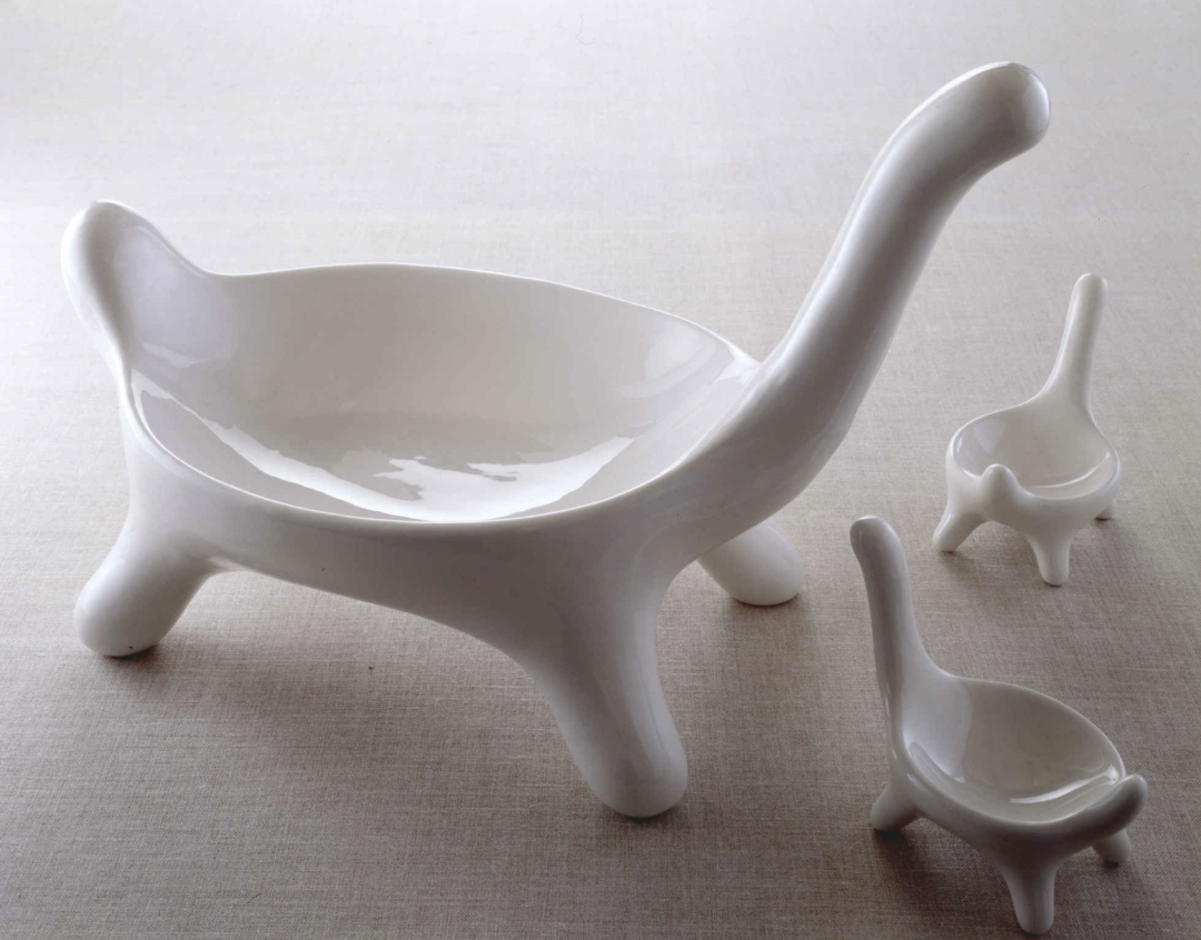 字母索引的另一个效果是让不同时代的创作并置在同一目录页,这让我们更容易地发现其前后创作的共通之处。就像有些画家几十年面对画布,总有几个反复重访的母题;Cibic 也有他在造型和色彩上的母题。比如从 80 年代初贯穿至今的模块化不对称几何体,比如简笔画风格的人形、动物与植物——我把它们称作 Q 版的仿生学设计:树、仙人掌、郁金香、狐狸、老鼠、恐龙、大象、小猪…… 它们在 Cibic 的设计乐园中融洽相处。而其色彩洋溢着著名意大利艺术家、超现实主义先驱、形而上学画派代表人物 Giorgio de Chirico 的红黄蓝。色彩是谱奏空间的音乐,柠檬黄、草绿或浅蓝让人明快,而洋红色可以同时是快乐、活泼、明媚、妖娆和迷人的。