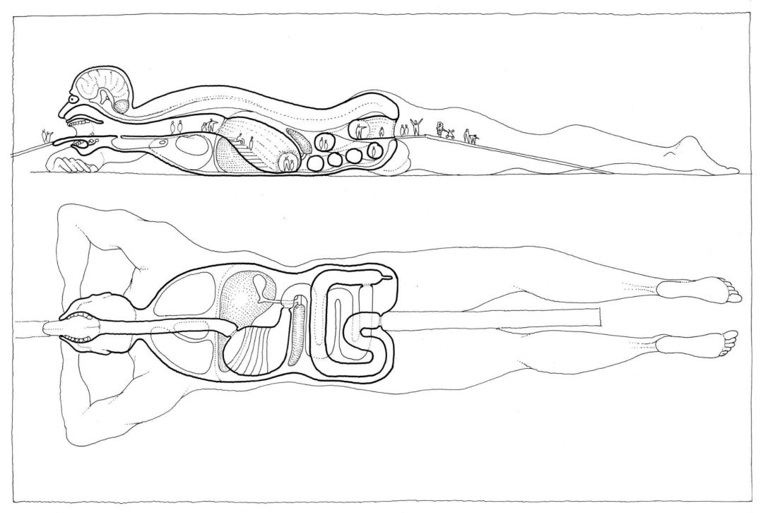 Cibic 还将人体当做房间:他为 “米兰世博会 (2015) ——滋养地球,生命之源” 设计了一座 “人体展馆” (2011) ,设想观众走入巨人的身体,大肠是展厅、胃是会议室…… 与此届展会的主题 “食物” 直接相关的人体消化器官被设计成了一个个房间。