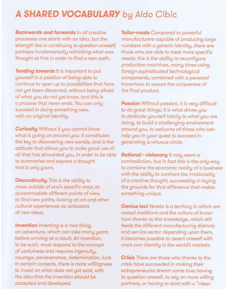 身为 2015 年威尼斯建筑双年展威尼斯展亭的策展人,Cibic 当时提出了十个关键词忠告。其中有些是我们很熟悉的词,比如好奇心、热情、定制化、发明、理性愿景,也有些令人出乎意料的词,比如中断 (discontinuity) ,鼓励人们跳出舒适区;禹步 (backwords and forewards) ,强调反思与回顾跟进展同样重要;平衡灵敏与技术,警惕照本宣科地一味追随技术;还有对极致的执着,驱动设计师不断打磨精进。今天回看,这些意外之词似乎是对疫情的预言,又或者,这也恰是一个明智设计师对生活常态的认知。