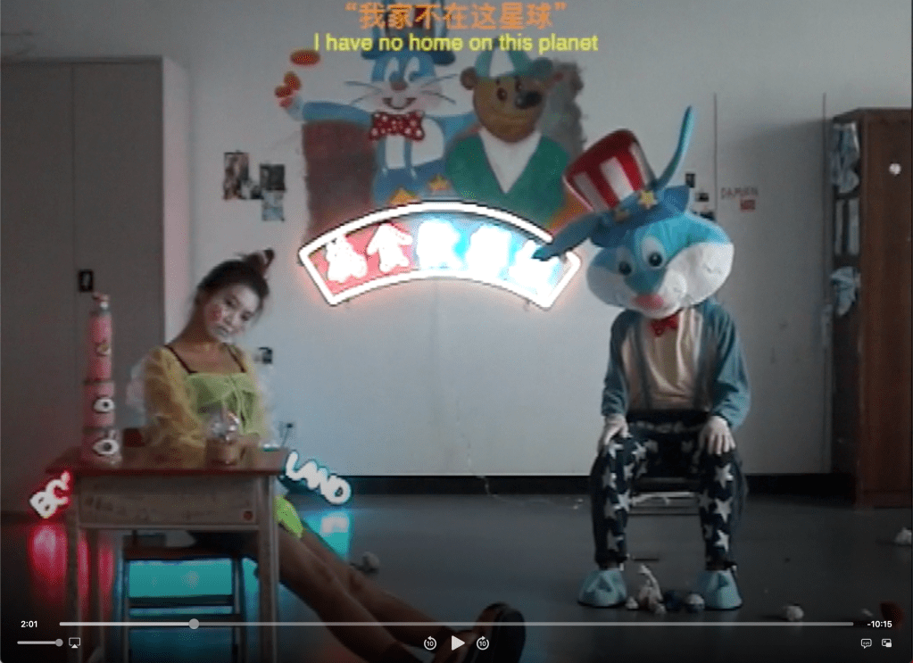 赖雨青的《金鱼仔》以温柔的女声嗓音絮絮念着粤语旁白,穿得像条黄金金鱼的艺术家在晃动嘈杂的手持录像画面中重访童年与少年时代的罗湖记忆。在海鸣威“谁能怪我总是太感性”的粤语歌声中(《我的回忆不是我的》),名叫蔡嘉诚的访谈嘉宾讲述着小时候和同学“经过那一片有小小丁香花味的草丛”的回忆,长大后的他还买到过一款跟那个丁香花味很像的香水。他说:“那一刻我发现自己没那么喜欢新的东西,反而比较钟意旧的东西”,这时画面里他的面前是个头朝下已经融化了一点的麦当劳甜筒。