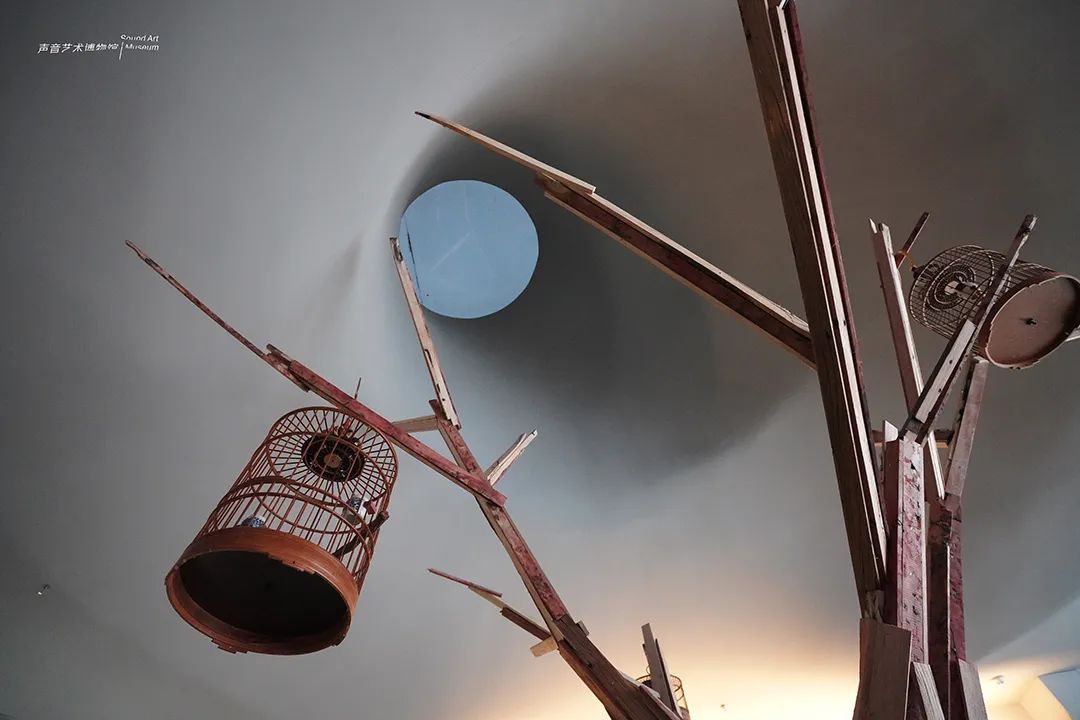 通县门楼的平移工程在当时看来简直不可思议,搬家后,它有了一个动听的新名字:“若谷楼”。以若谷楼为种子,在过去十多年间陆续生长出的占地 8200 平方米、展览空间 6400 平方米的槐谷林艺术花园院落,如今以错落其间的多栋建筑,分别承载着声音艺术博物馆的不同功能:常设展 “声音总站”;临展厅“声艺空间”,目前正在展出“音顾” 中国当代艺术中的声音创作三十年回顾展;集装箱建筑群 “声活中心”,计划包括“音速童年”、“声疗体验室”、公教活动空间“多功能听”、音乐演出平台 live house、艺术家驻留中心、鸽哨基地、屋顶花园等区块,目前正在展出“天上人间” 声音艺术展 ;此外还有可小型演出的咖啡馆兼酒吧 “分响吧”、聚焦艺术与设计衍生开发的“分响智造设计集成空间”、餐厅“大红大紫” 和“虚怀楼”等空间,以及可置放户外声音装置的优美庭院和小树林。