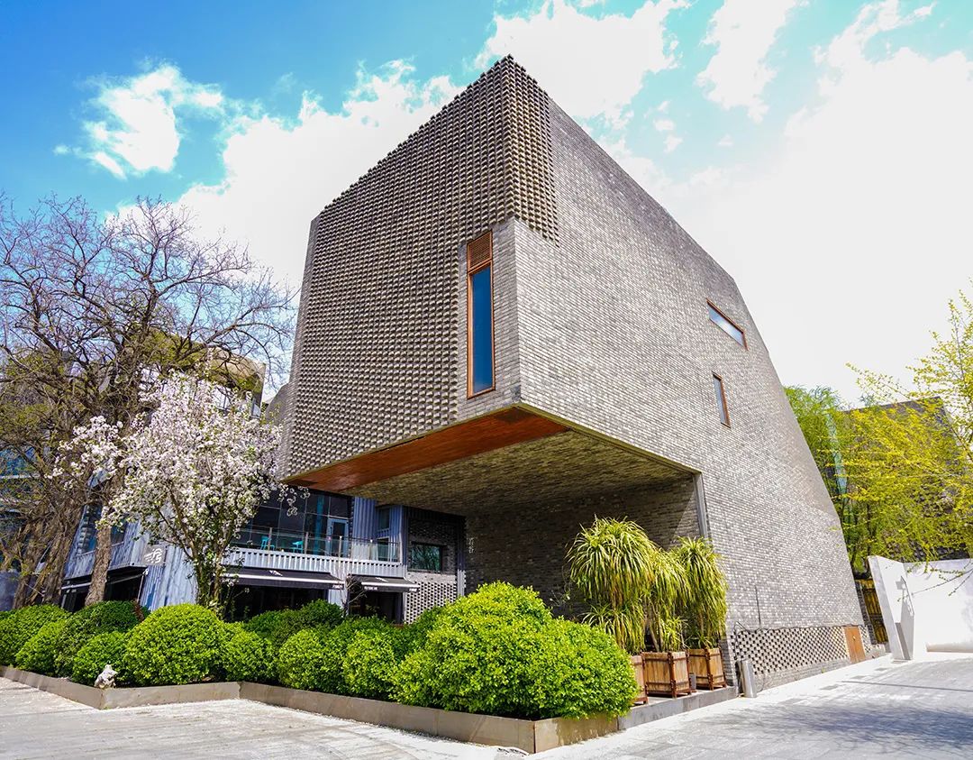 二十多年前,一位来自美国的画廊主杰克 · 蒂尔顿(Jack Tilton)选址宋庄,出资建造一座国际艺术中心,为国际上有声誉的艺术家提供驻地交流计划。如今已声望显赫的伊朗裔美籍建筑师纳德 · 特赫拉尼(Nader Tehrani)和委内瑞拉裔美籍建筑师莫妮卡 · 庞塞 · 德莱昂(Monica Ponce de Leon)合作设计了这栋当时名为 “通县门楼”(Gatehouse,Tongxian)的建筑,将之构想为一块在一瞬间抽真空压缩成形的巨石,仿佛一座吸除多余物质后的雕塑;再以佛兰芒砖(Flemish brick)拼砌外墙,形成庄严优雅的纹理。它于 2003 年落成,因避开了传统建筑类型学的前沿实践而屡屡获奖。
