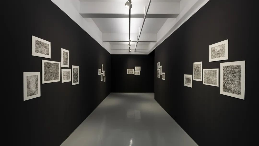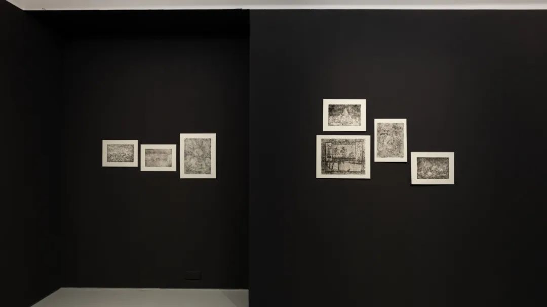 此次展览的策展人莫妮卡 · 德玛黛是曹应斌的多年好友,也是促成他得以经常前往意大利的关键人物。展览的布局也显示出德玛黛很熟悉曹应斌的创作脉络:空间隔成四进,从黑白版画到明丽水彩,再从黑屋子里的炭笔画到会客室的铝板干刻——首尾呼应;而嵌套在画廊白盒子空间的黑屋子,呈现对 “我们最近的历史性的黑暗时期”(策展人语)的仓皇记录。