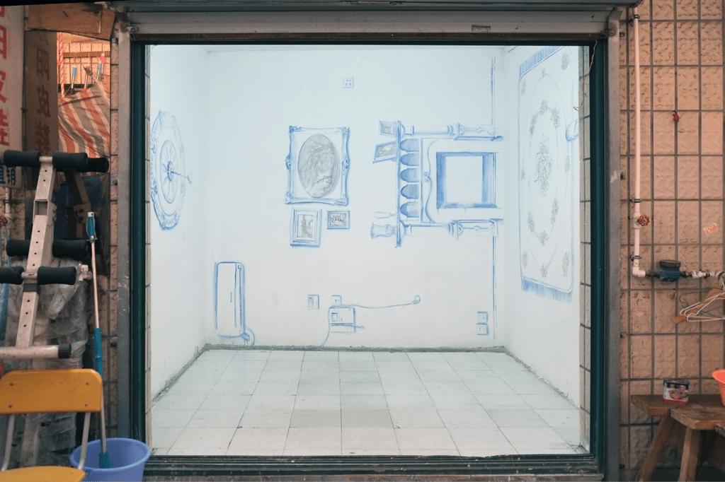 随着这个奇怪的盒子日复一日地原地变装,钟表店、洗衣店、新疆烤馕店的人们便逐渐地、或多或少地习惯了它的存在。人们不再在意艺术有没有用,而只会留意这个空间到底如何在被使用,被各种各样自称为艺术家的人以艺术之名使用:成为创作驻留地,成为影棚,成为临时工作室。偶尔,当空间既没有在布展、也没有任何展出的空闲时段,周围的人们会自动地抱持“不要浪费”的美德与机敏,把桌椅搬进来打麻将、走象棋。不存在全然空置的时候,爱好(艺术以外)游戏的人们总会自然占用空间。德沃图赞美即兴的品质,崇尚灵活机动,就算计划好了也可以推倒重来。即兴并不等于随便,“实际上,所有的即兴创作都是建立在长期训练的基础上的,那些看似不经意的随意选择,统统来自大量的思考和沉淀。”[8]