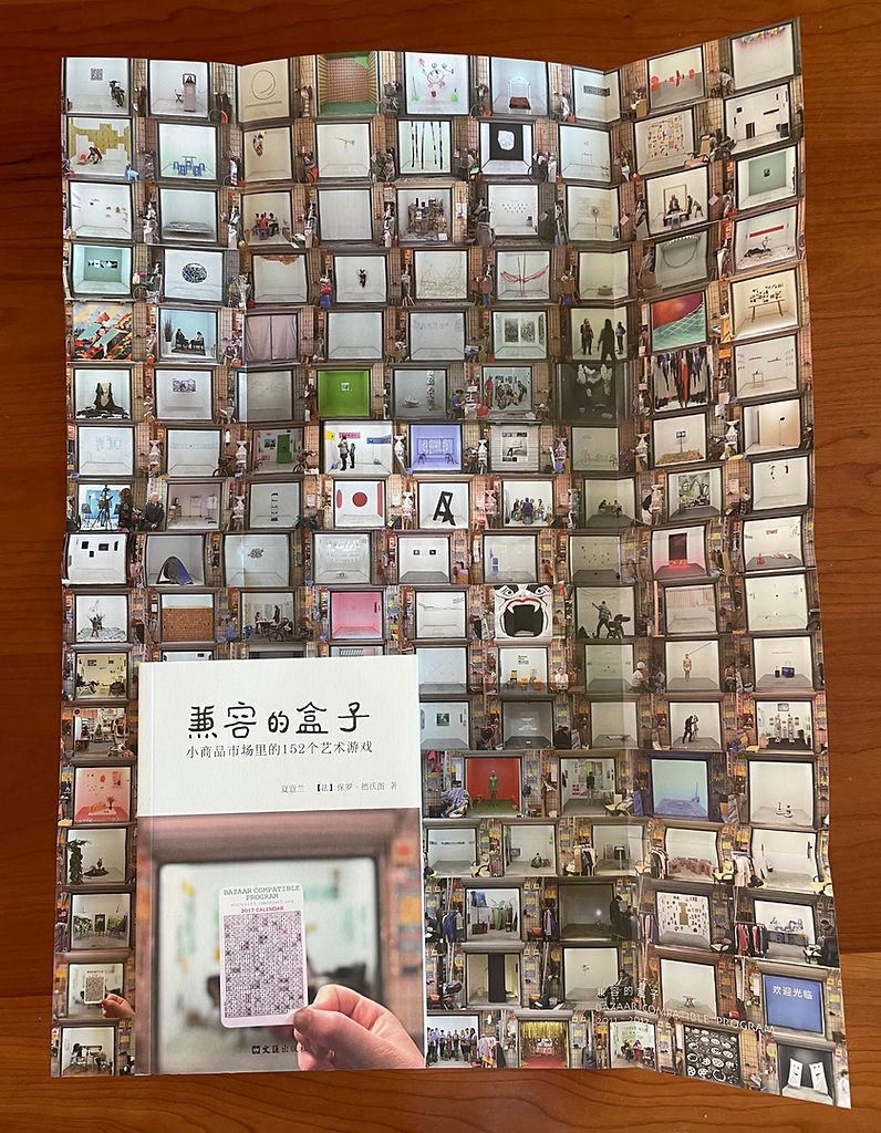 展开书的封套,是一张壮观的海报——前后跨越七年、总计152期落地了的艺术方案在这张海报上一框框整齐排列;每个框都对准那同一个“盒子”,每个框都橱窗般呈现出截然不同的景象。这本书的作者,即是方案的发起者:保罗•德沃图(Paul Devautour)与夏意兰夫妇。