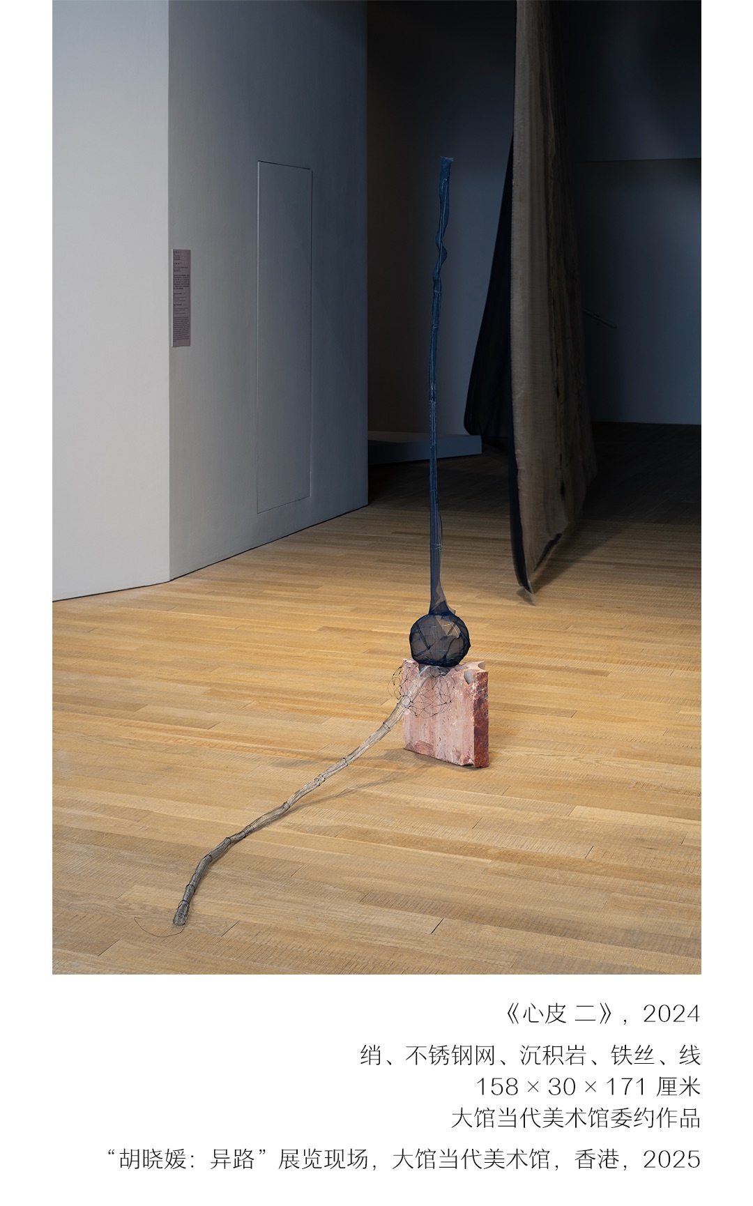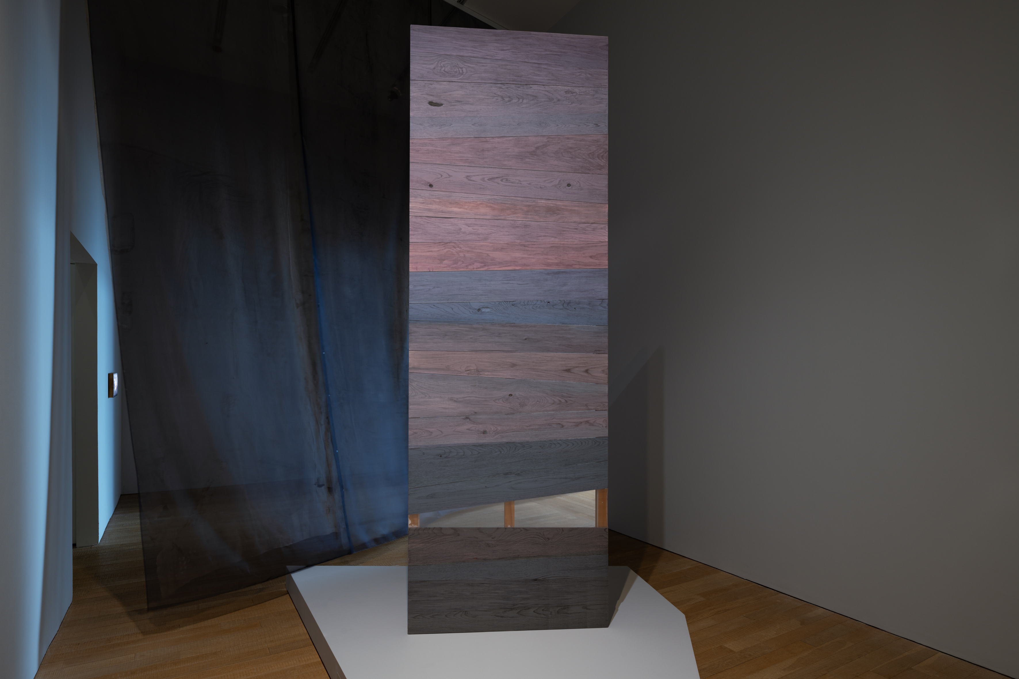 新旧绡幕贴而并置,营造出切肤的和谐兼矛盾;这对欢喜冤家伺伏在极简的表象之下,对话着恒贯时空的真相。展厅里人行成风,撩动绡幕,每次起伏都成为现场不经意的事件。于是展览不止停留在观看关系上,而接近一个生动的存在场域。